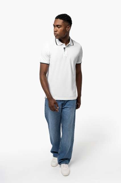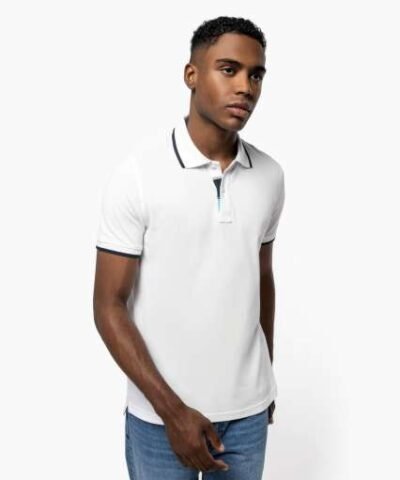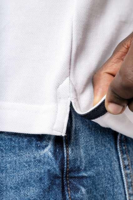 100% cotton piqué;Ribbed collar with contrast tipping and contrast undercollar (except White/ Navy: no contrast under the collar. only a thin red border under the placket);Contrast taped neck and side slits;2 button placket with decorative print on undercollar;Ribbed cuffs with contrast tipping;Twin needle finishing at the hem;Stand-up collar – can be worn collar up or down;Certified STANDARD 100 by OEKO-TEX® N° CQ 1007/7. IFTH;