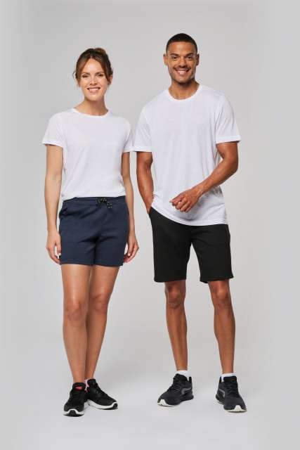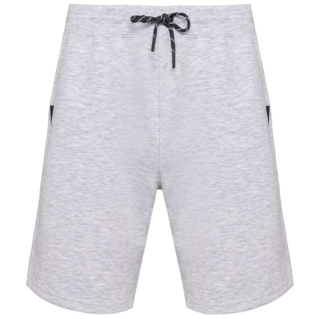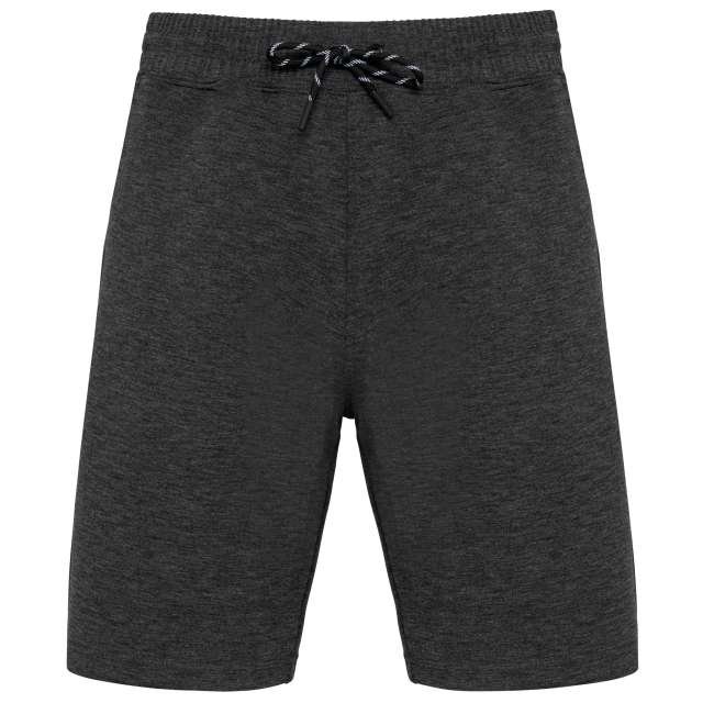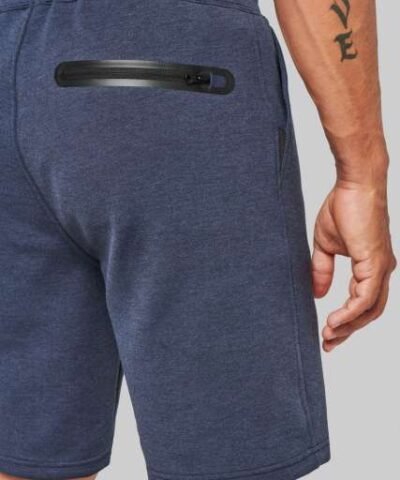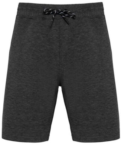 Plain colourways: 94% polyester/6% elastane;Marl colourways: 79% polyester/15% viscose/6% elastane;Extremely comfortable fabric;Elasticated waistband with two-tone drawstring with plastic tip and metal eyelets;2lined jersey front pockets and 1zipped back pocket. contrasting heat-sealed finish;Pockets finished with a contrasting elasticated section: Black on all colourways and Dark Grey on the Black and Ash Heather;Twin needle finishing at hem;Tear-away brand label;