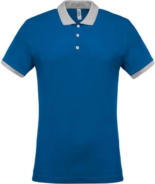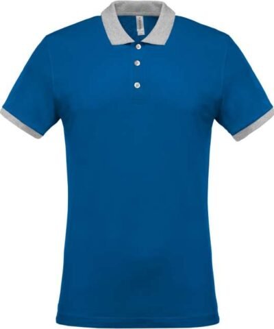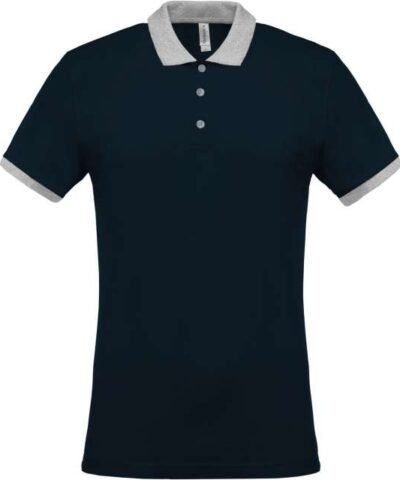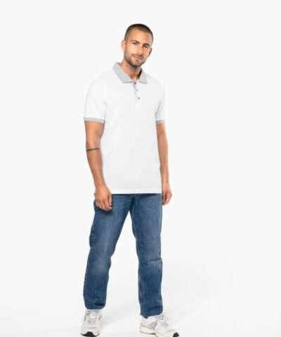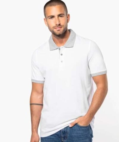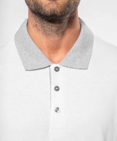 100% preshrunk cotton piqué (Oxford Grey: 90% cotton/10% viscose);Contrasting rib at neck and cuffs;Contrasting taped neck;Contrasting inner placket with 3 buttons;Twin needle finishing at hem;