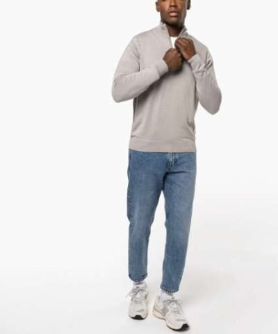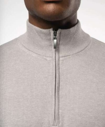 50% cotton / 50% acrylic;Fitted style;Double layer cadet collar with smoke effect zip neck;Taped neck;
