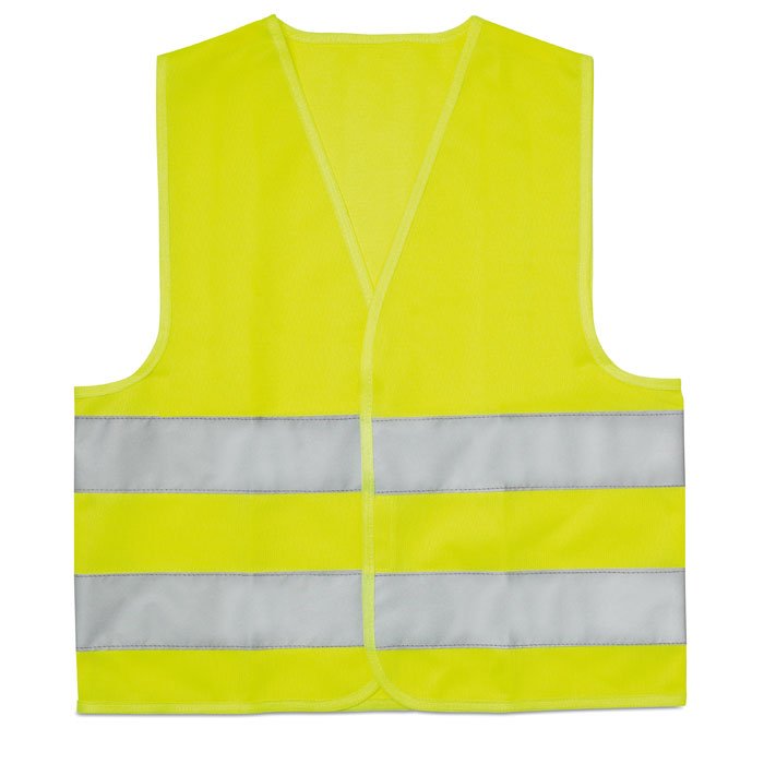 Child high visibility vest with 2 horizontal reflective bands. 100% polyester. EN17353.