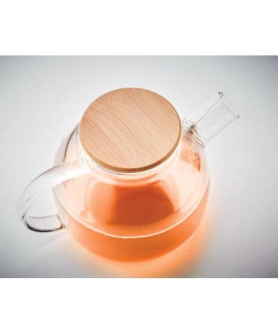 High borosilicate glass teapot with stainless steel infuser and bamboo lid,. Capacity 850 ml. Bamboo is a natural product, there may be slight variations in colour and size per item, which can affect the final decoration outcome.