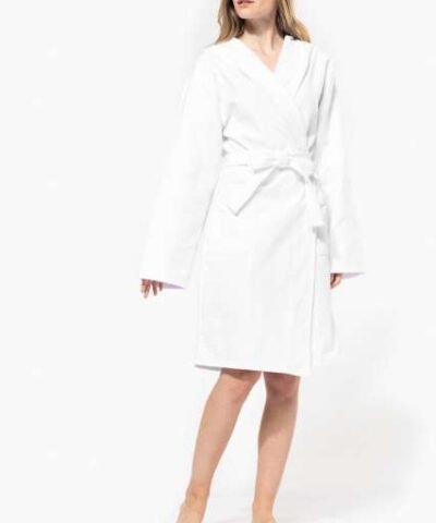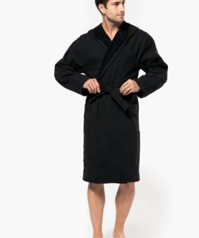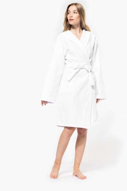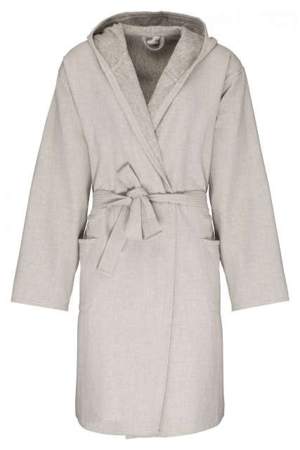 100% cotton;All colourways are made from organic cotton;Terry knit;Nice and soft touch;Large hood;2side patched pockets with topstitching;Tie belt with loops;Hanging loop at neck;Twin-needle finishing at hood edge. cuffs and hem;