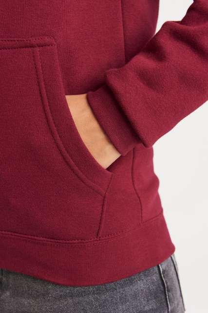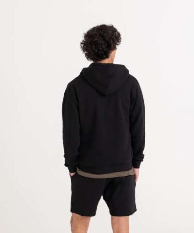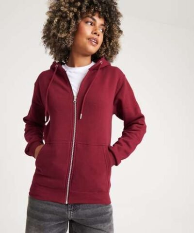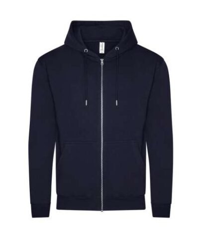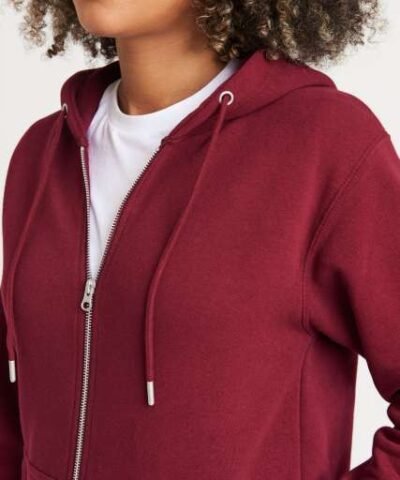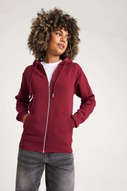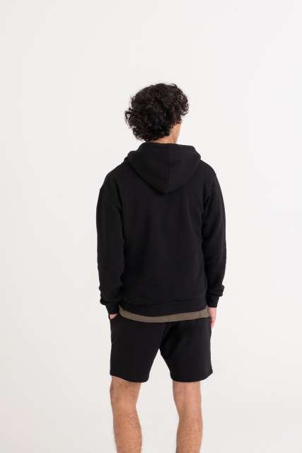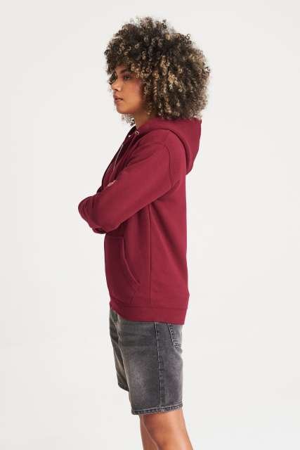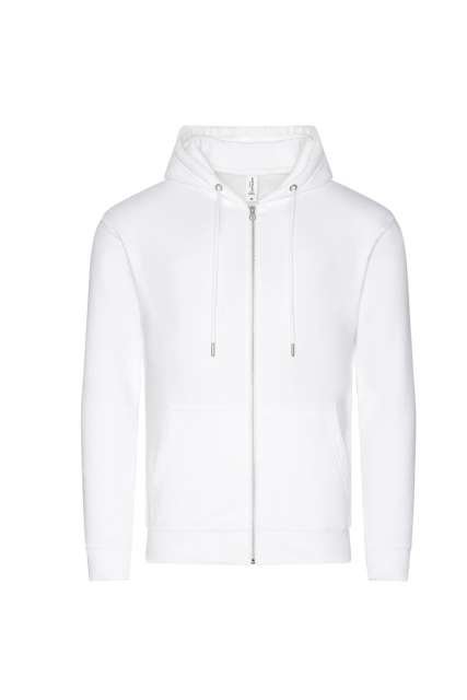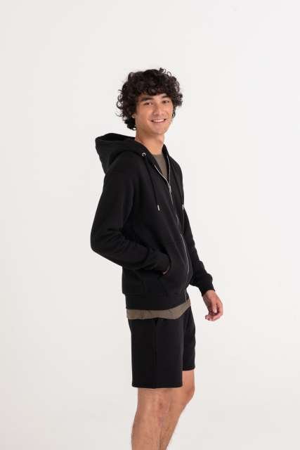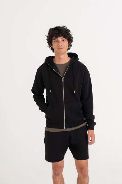 80% Organic Cotton/20% Recycled Polyester;Standard fit;Certified Organic yarn and factory;Certified Recycled yarn and factory;Full zip hoodie;Metal YKK zip;Self-fabric covered main zip;Double fabric hood;Self-coloured cords;Kangaroo pouch pockets;Brushed inner fleece;Ribbed cuffs and hem;Twin needle stitching detail;Tear away label;100% cotton faced fabric;