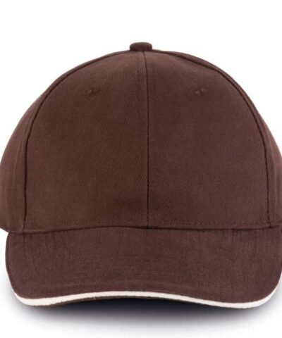 100% heavy brushed cotton twill;Contrast sandwich peak;Size adjuster with metal buckle and loop;*3 colourways with additional contrast under the peak;