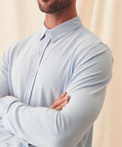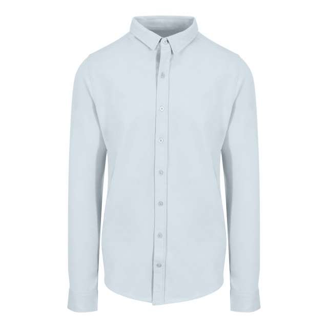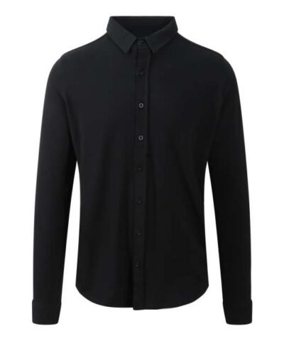 95% Cotton/5% Elastane;Fashion fit;Micro Pique Knit;Turned hem with single needle stitch detail;Twin needlestitching at side seams. sleeves and cuffs;Single needle contrast at armholes collar and front placket;2 button placket at cuff;Modern narrow collar;Long sleeves;Yoke at back shoulder;Darts at back for close fit;No pockets for maximum embellishment area;