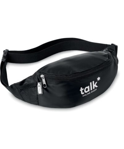 Fanny bag in 210D RPET with zippered main compartment and adjustable waist strap.