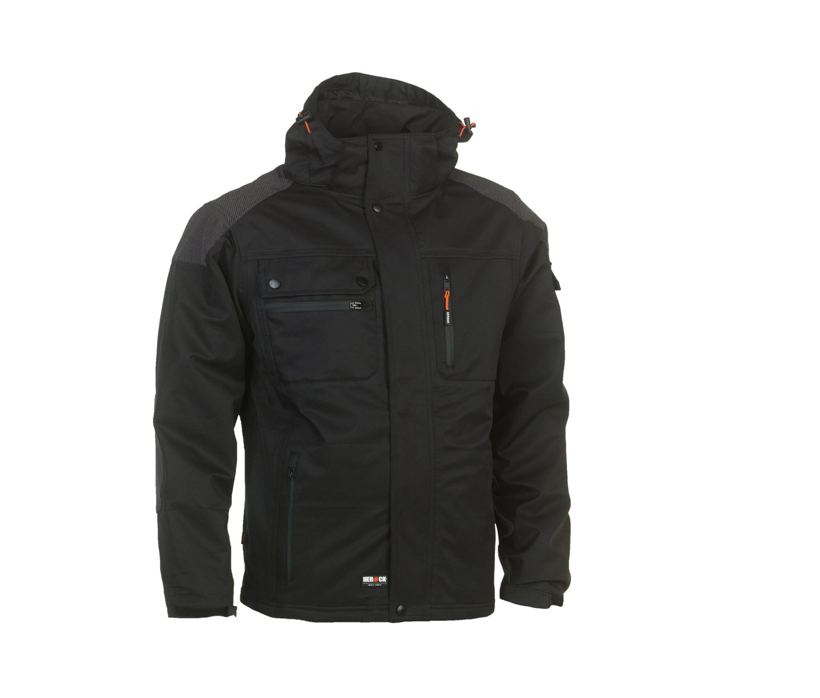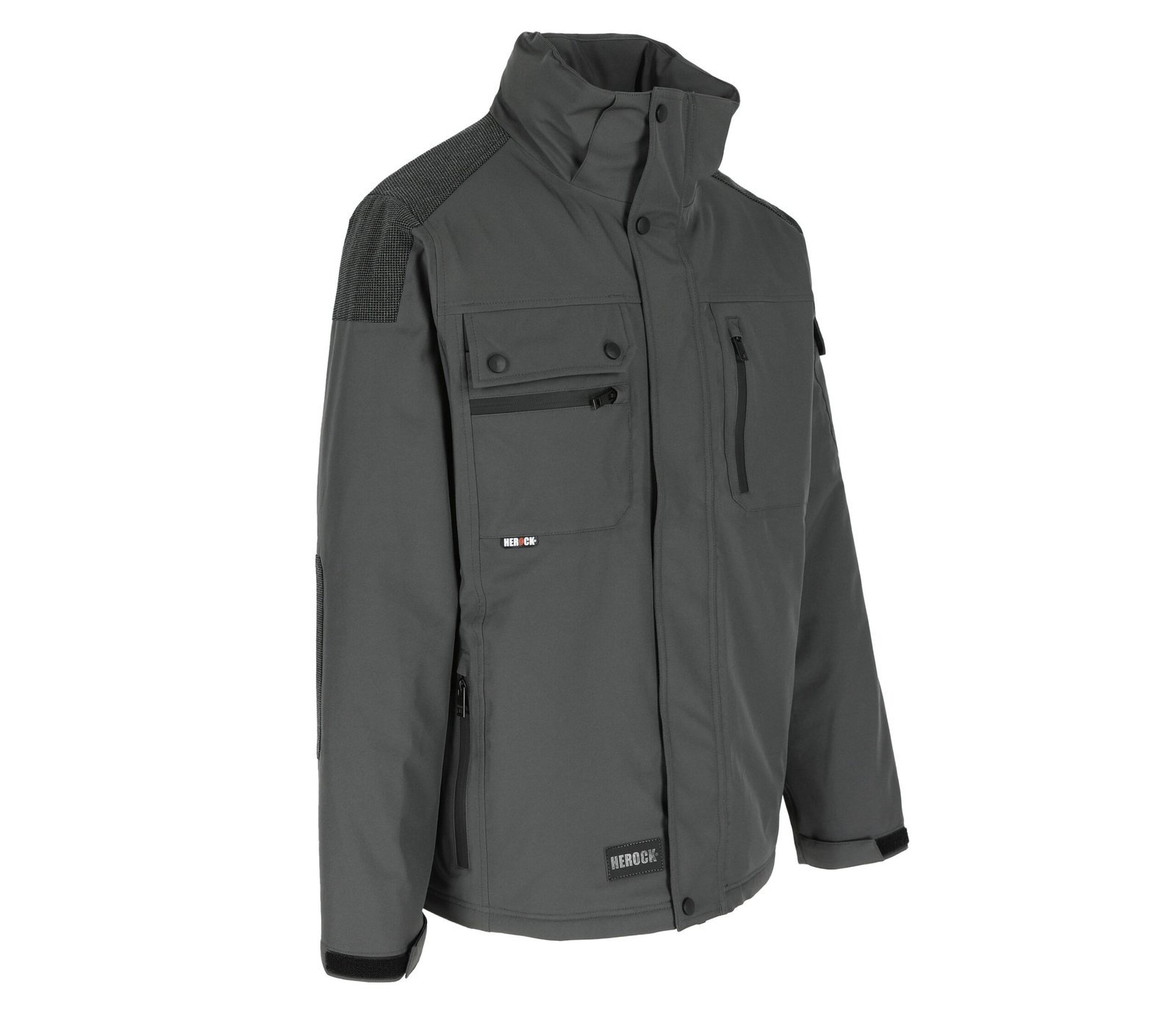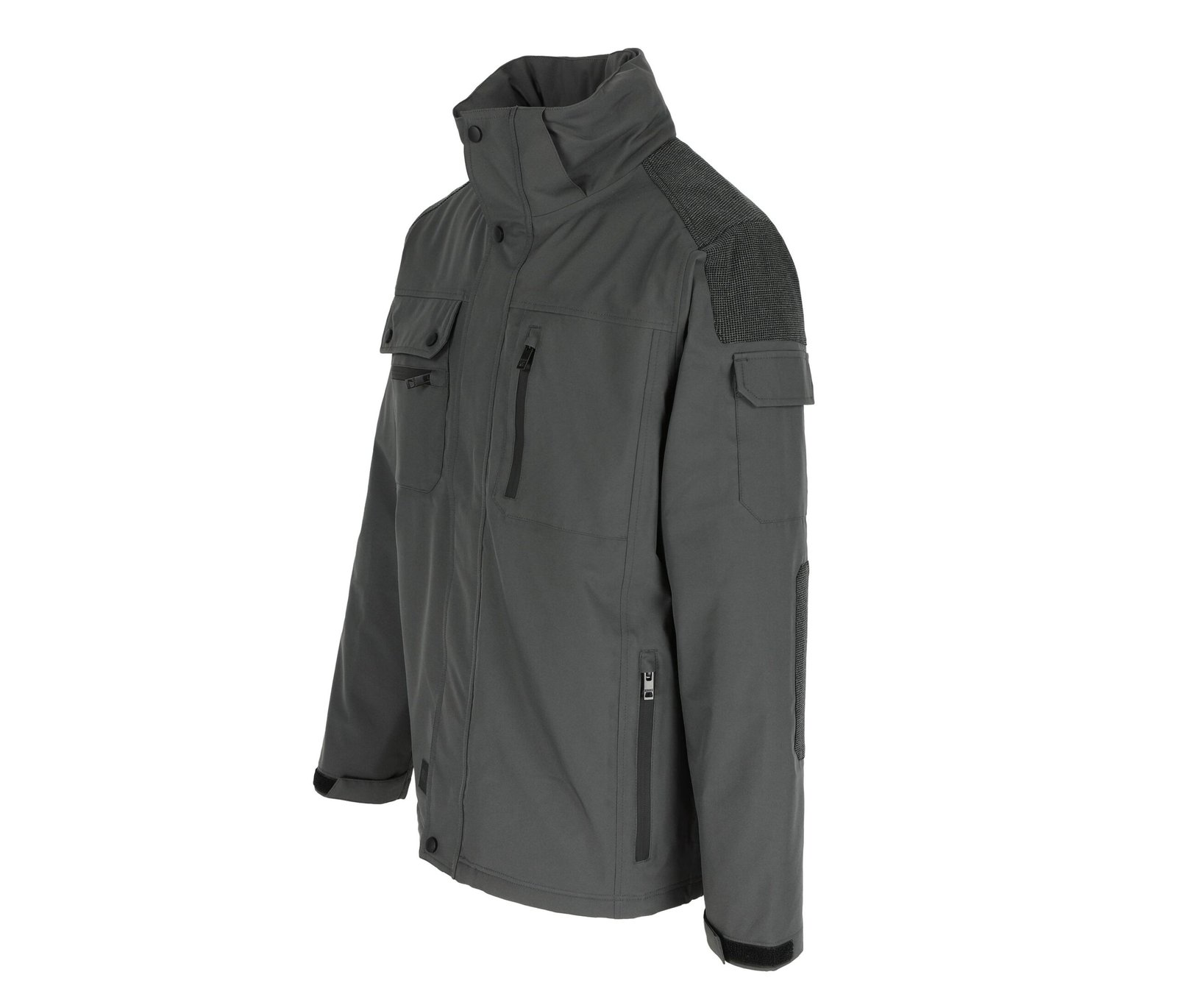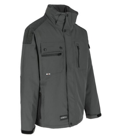 Multi-pocket breathable and waterproof jacket. Breathable 3000 mvp. Waterproof 8000 mm. Taped seams. Reinforced shoulder and elbow patches. 2 chest pockets with extra pocket. 2 side pockets.