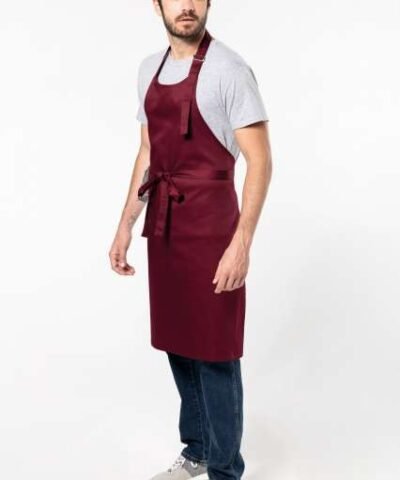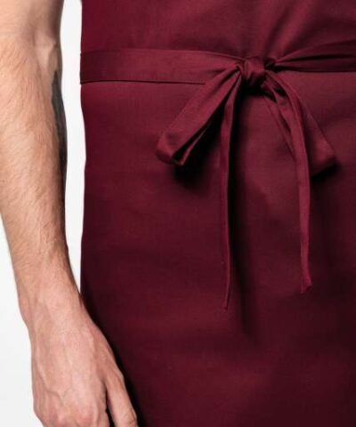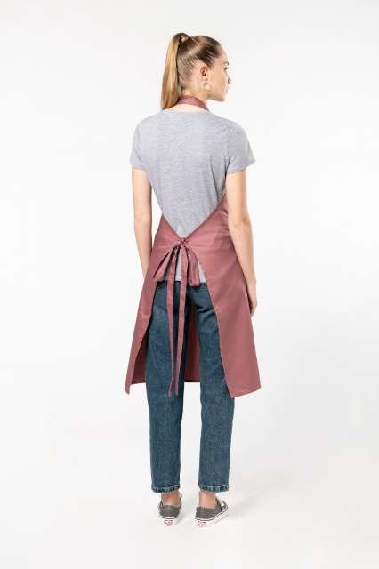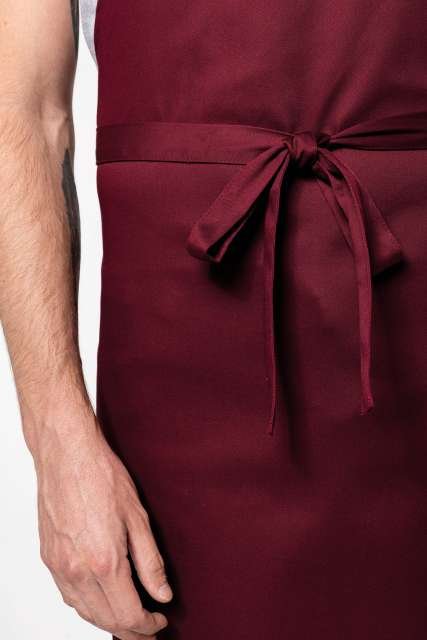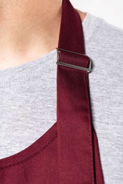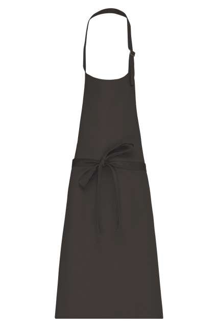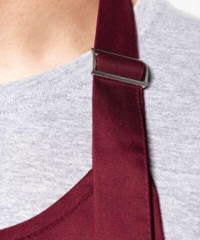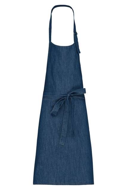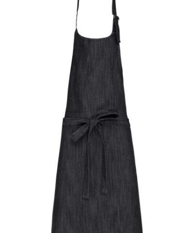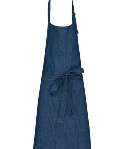 65% polyester / 35% cotton (Denim. Black Denim 65 % cotton / 35 % polyester);Domestic washing at 60°C;Neck tie with metal buckle to adjust the length of the apron;No pockets;Dimensions: Length 90 cm – Width 76 cm;Denim colours: this product has been specially treated and appears intentionally aged;This manufacturing process results in colour variations between products and makes each piece unique;Certifié STANDARD 100 by OEKO-TEX®N° CQ1007/8. IFTH;