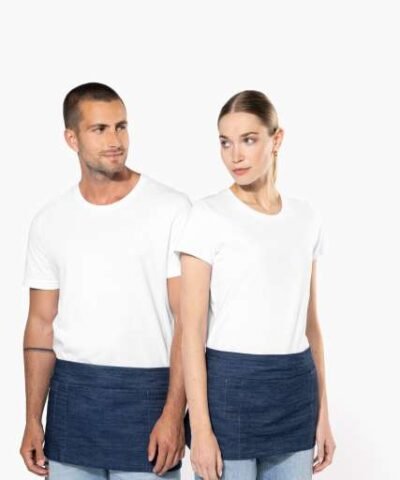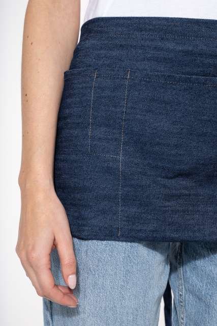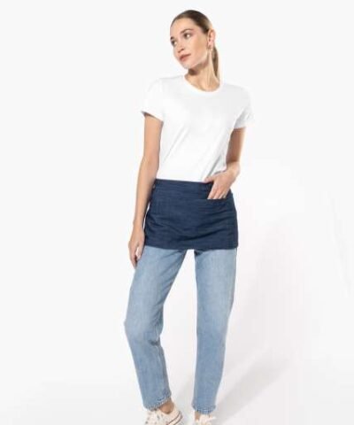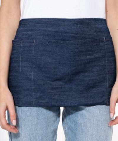 65% polyester / 35% cotton (Denim 65 % cotton / 35 % polyester);5 pockets: 3 large and 2 narrow;Apron: Length 26 cm – Width 70 cm;Pockets: Length 20 cm;Denim colour: this product has been specially treated and appears intentionally aged;This manufacturing process results in colour variations between products and makes each piece unique;Certified STANDARD 100 by OEKO-TEX®N° CQ1007/8. IFTH;