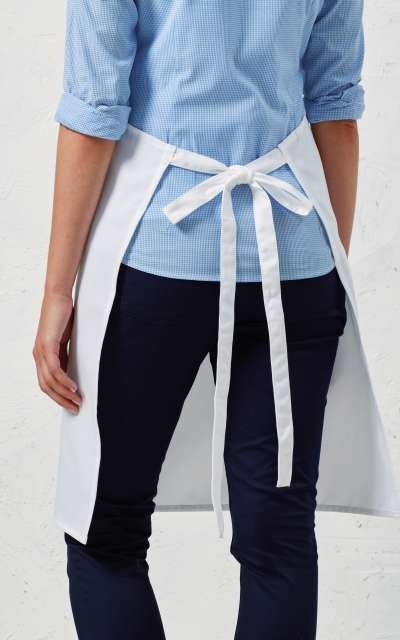 Fabric;100% Polyester Twill;195gsm;Features;Self-fabric neck;Self-fabric ties 90cm long;Adjustable sliding buckle on neckband;