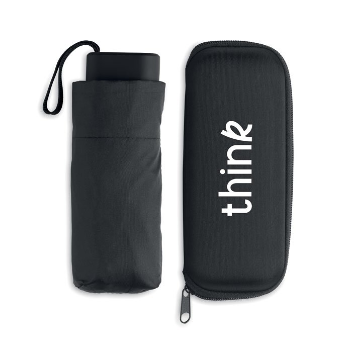 19 inch 5 fold manual open and closure windproof umbrella in 190T pongee. Presented in EVA case.