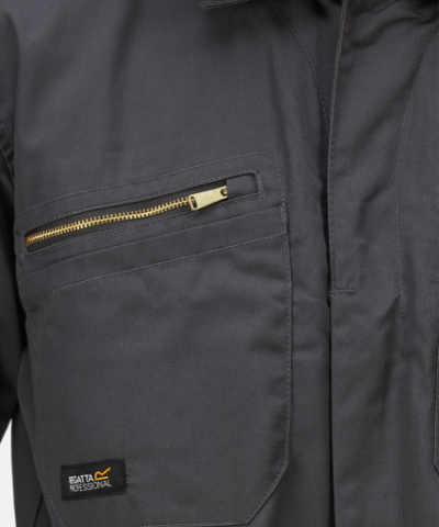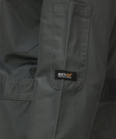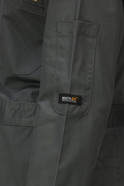 Hardwearing polycotton fabric;Fabric weight 245 g/m2;65% polyester 35% cotton fabric;Special Features;Part elasticated waist;Knee pad pockets;2 chest patch pockets with snap fastenings;2 back pockets;Concealed snap front fastening;2 side pocket openings;Side leg Ruler pocket;1 upper sleeve pocket;Stud fastened collar;Reinforced crotch seam;