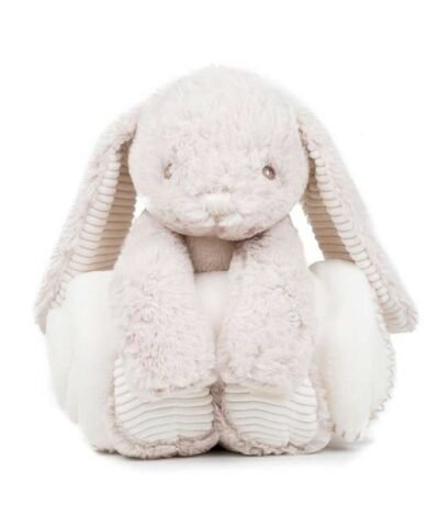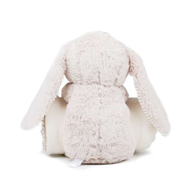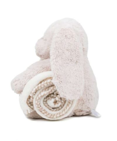 100% Polyester;Rabbit with paw fastening around blanket;Hook and Loop fastening on paws;Separate Blanket with stitch edge detail;Blanket 75 cms x 90 cms;Complies with EN71 regulations;Suitable for all ages;Hand wash only;