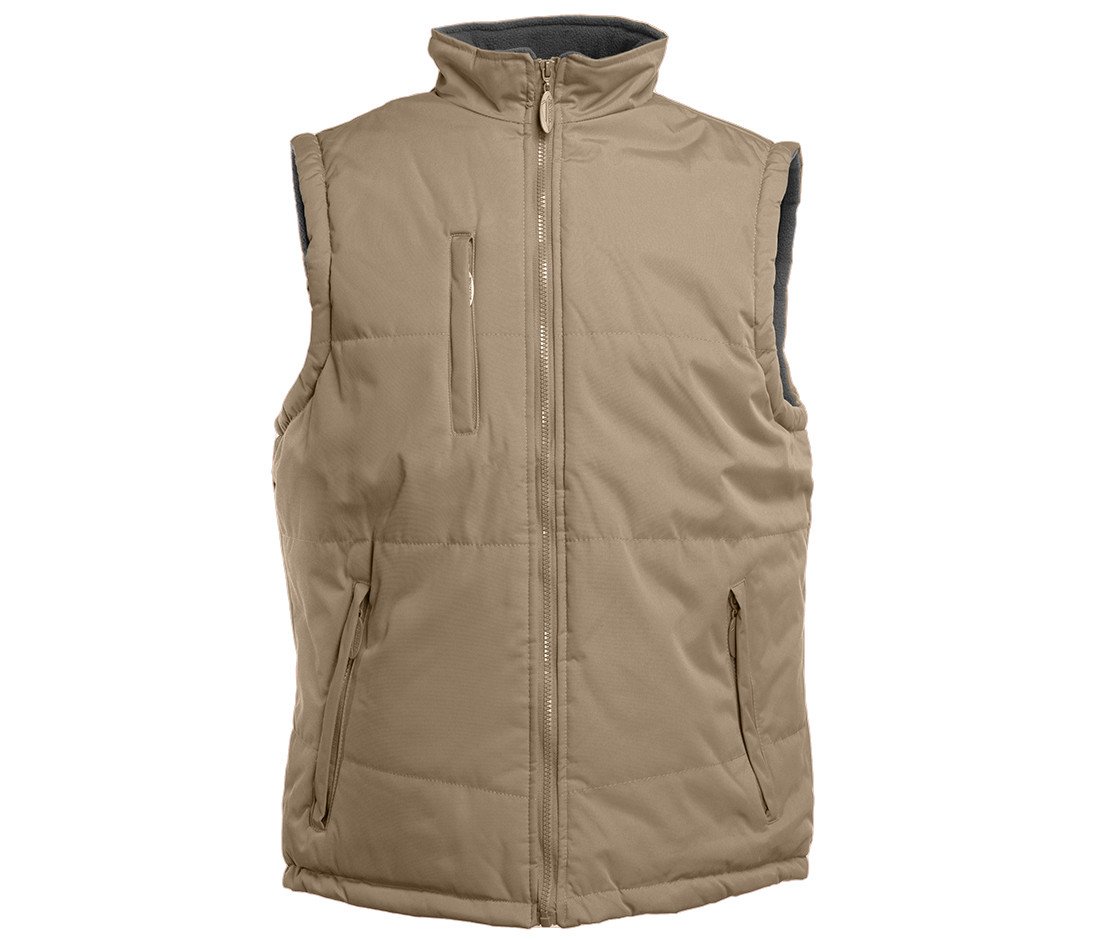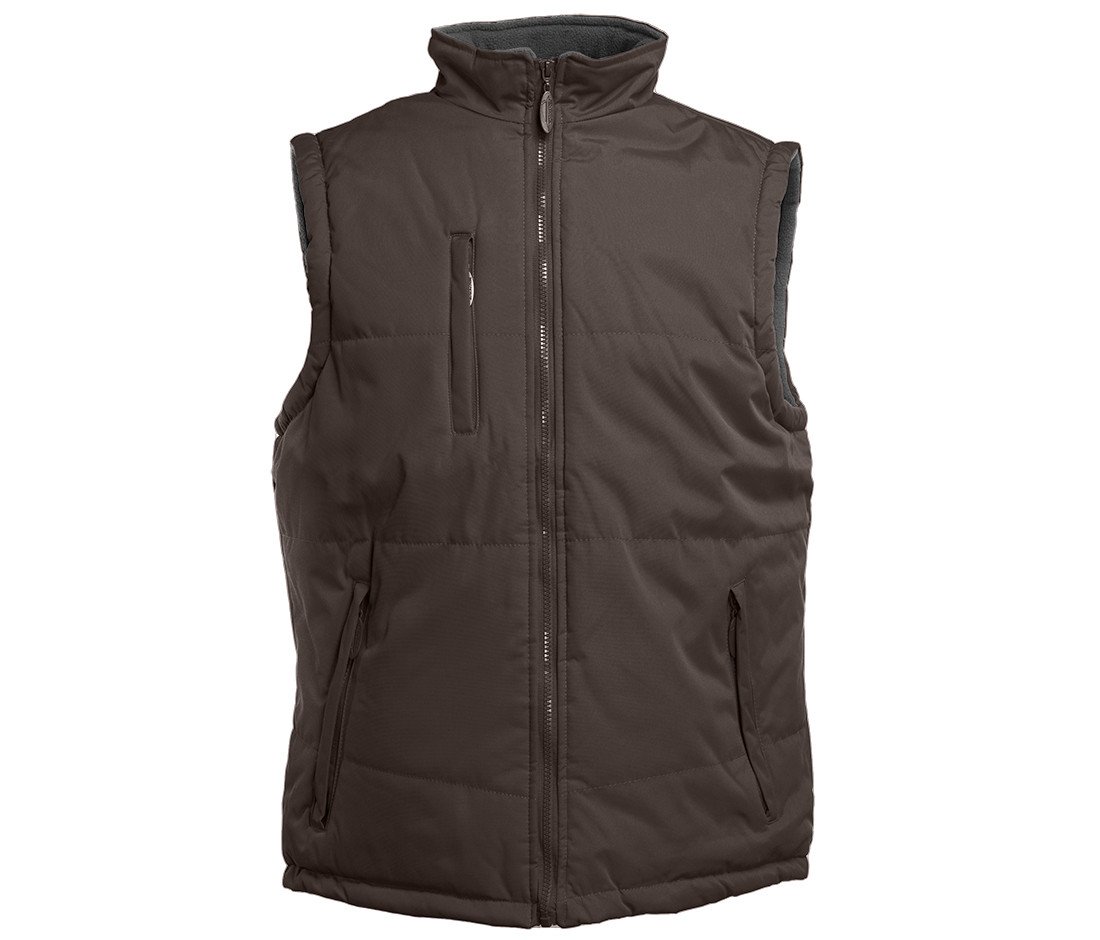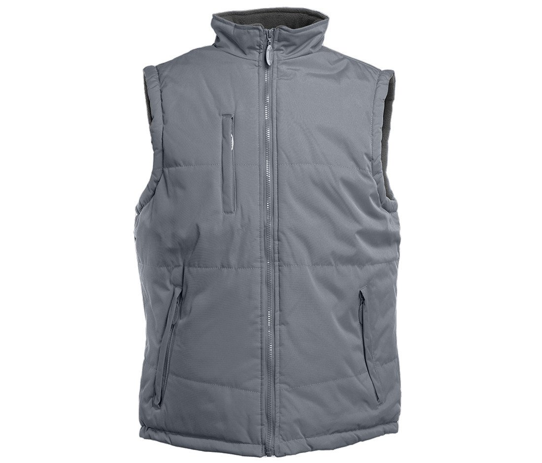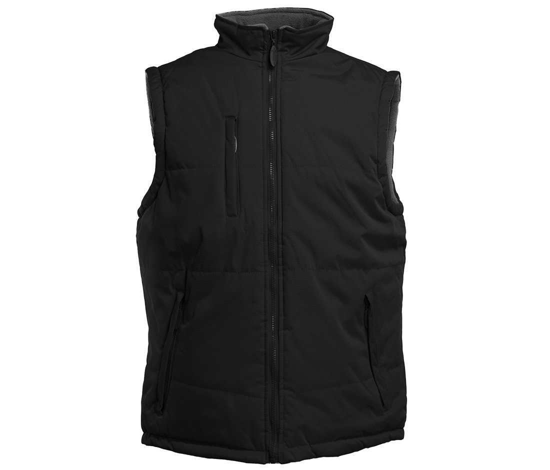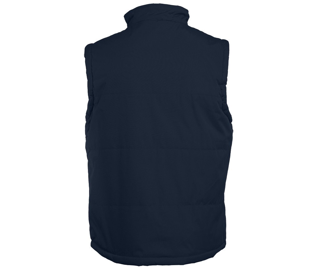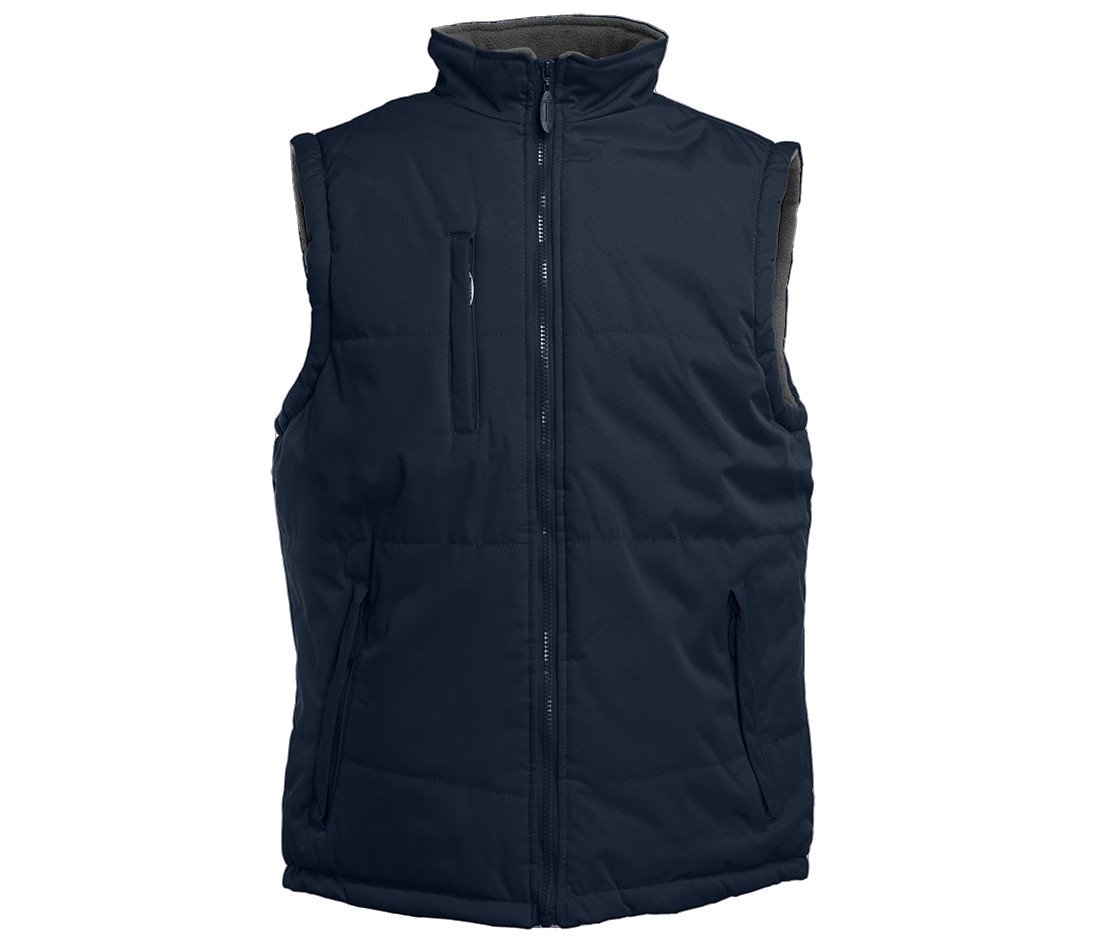 Large zip bodywarmer with pull tab marked Pen Duick. 2 zipped side pockets. 1 outside right zip pocket. Waterproof and windproof. Large inside zipped pocket for heart marking.