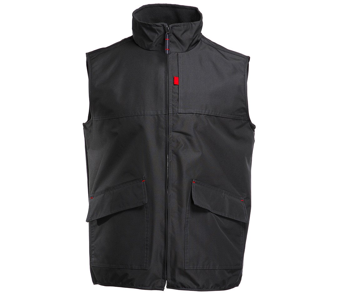 Waterproof and solid bodywarmer. Windproof. 2 patch pockets with Velcro®. Chest pocket with Velcro®. Access for personalization. Fleece lining.