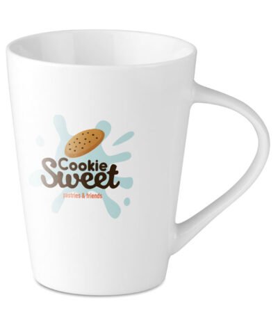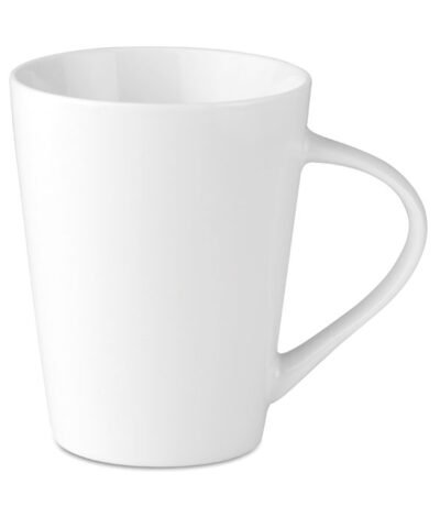 Porcelain conic mug of 250 ml capacity. Bulk packaging. Pad printing is not dishwasher safe. Ceramic transfer is dishwasher safe.