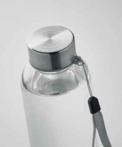 Drinking bottle in Tritan Renew™ which is BPA free with stainless steel handle lid. Leak-free. Capacity 500 ml. This product is derived from 50% waste plastic using ISCC certified mass balance.