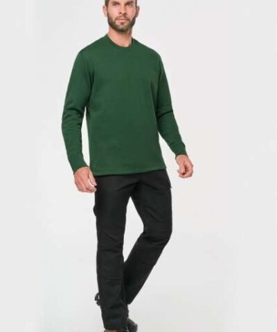 EX KA4001;80% cotton/20% polyester;3-thread fleece with LSF (Low Shrinkage Fleece) treatment;Washable at 60°C;Ribbed crew neck and cuffs;Invisible zipped pocket on right-hand side;Backing at shoulders and elbows for added resistance;Pen holder on left sleeve;Half-moon finish at back;Hanging loop at neck;Twin needle finishing at hem;Longer back for added comfort;Certified STANDARD 100 by OEKO-TEX®N° CQ 1007/7. IFTH;