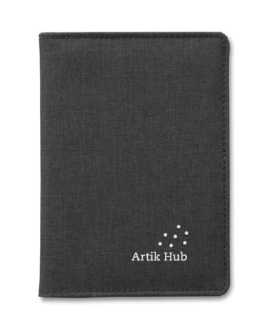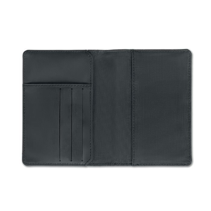 RFID blocking wallet/passport holder in 2-tone polyester.