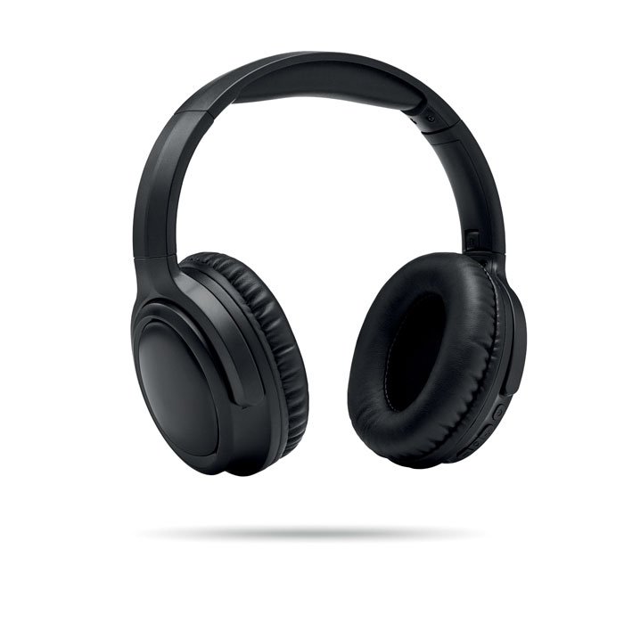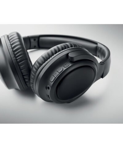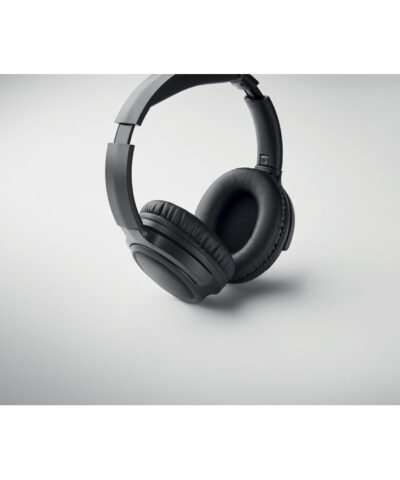 Active noise cancelling (ANC) 5.3 wireless foldable headphones in ABS. Hands free function and built-in microphone. Playing time approx. 17 hours. Includes micro USB charging cable. Rechargeable 200 mAh Li-ION battery. All presented in PU pouch. Operating range: 10 m.