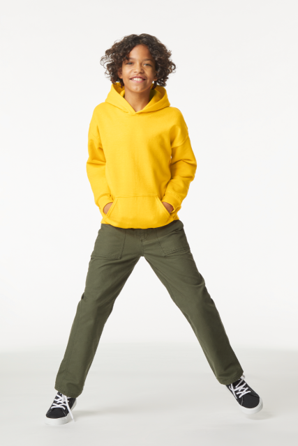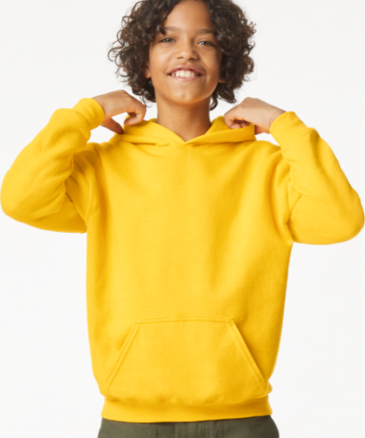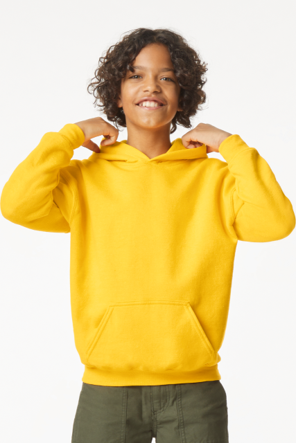 80% Ring Spun Cotton. 20% Polyester. 285.0 G/SqM (White 278.0 G/SqM);Softstyle Midweight Fleece features a cozy. brushed interior and a 100% ring spun cotton face. ideal for a variety of cotton friendly decorating techniques;Jersey lined hood. no drawcords;Pouch pocket;1×1 rib with spandex cuffs and bottom band for enhanced stretch and recovery;Classic fit. seamless body;Recycled. high-performing black tear-away label;CPSIA Tracking Label Compliant;Companion style: GISF500;