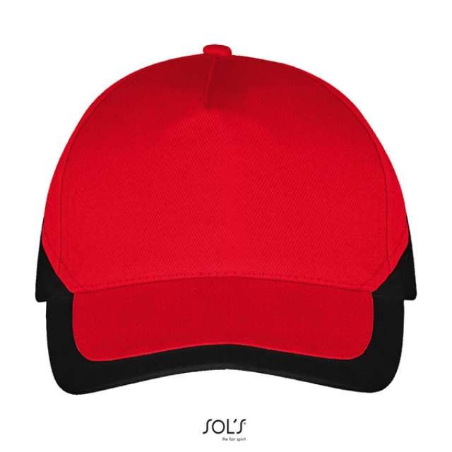 Quality;100% heavy brushed cotton;Style;5 panels;Preformed peak;4 embroidered ventilation eyelets;Adjustable back fastening with metal buckle;