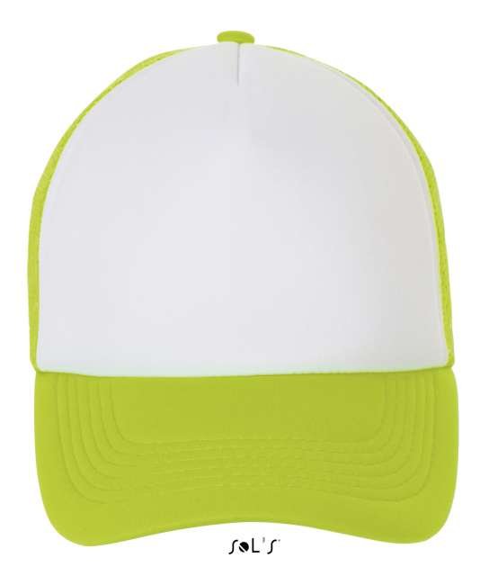 Quality;100% polyester mesh;100% polyester front panel (5 mm foam) & peak (3 mm foam);Style;5 panels;Adjustable plastic fastening;