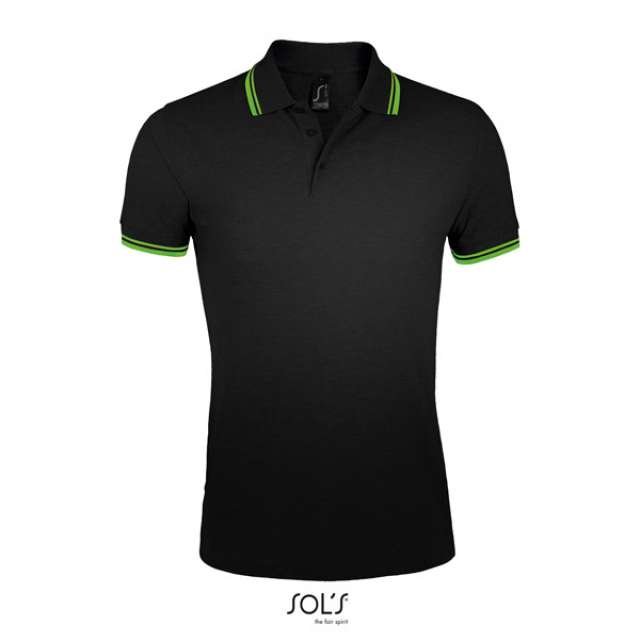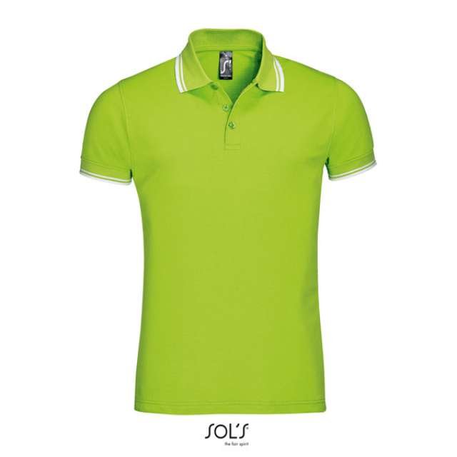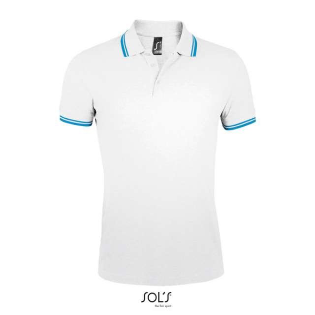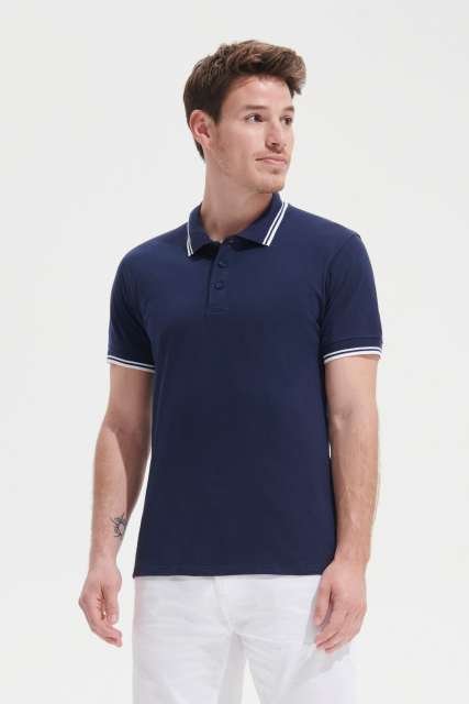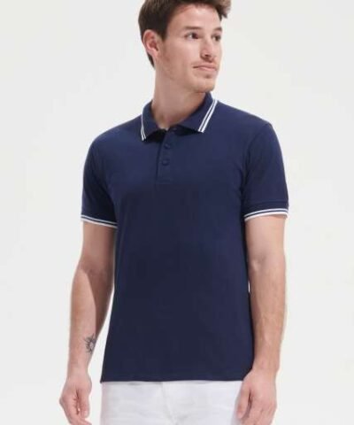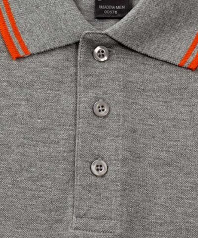 Quality;100% Ringspun cotton;Style;Rib 1×1 collar and cuffs;Reinforcing tape on neck;Short sleeves;Contrasting stripes on collar and cuffs;Tone on tone 3 button placket;Fitted cut;Cut and sewn;Side slits;Spare button on the inside seam;