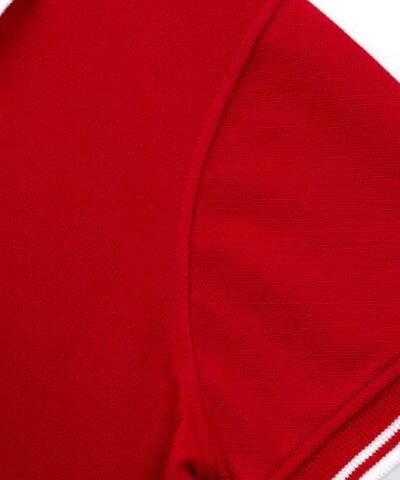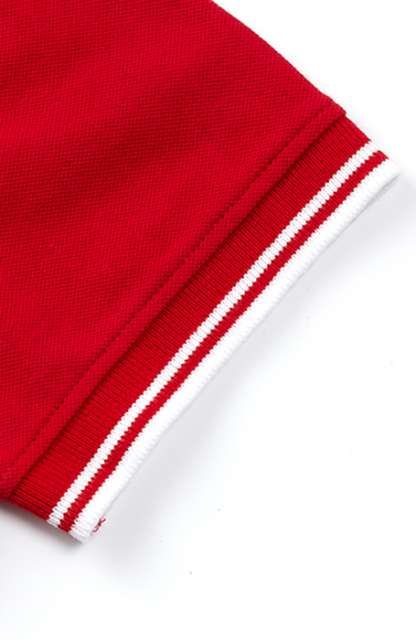 Quality;100% Ringspun cotton;Style;Rib 1×1 collar and cuffs;Reinforcing tape on neck;Short sleeves;Contrasting stripes on collar and cuffs;Tone on tone 3 button placket;Fitted cut;Cut and sewn;Side slits;Spare button on the inside seam;