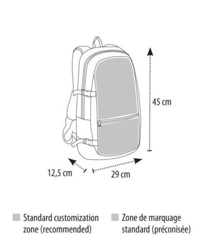 Quality;100% polyester;Style;1 front zip pocket;Padded laptop compartment;Adjustable padded and reinforced shoulder straps;Padded back;Compression straps with clips;Nylon carrying handle;