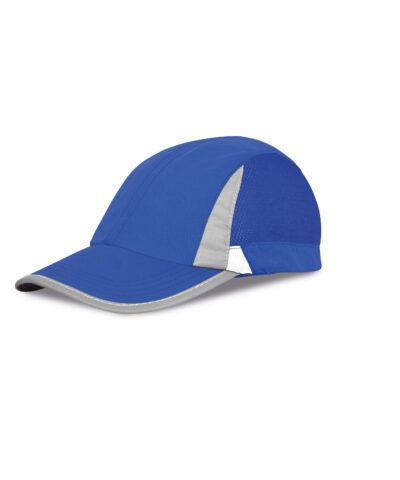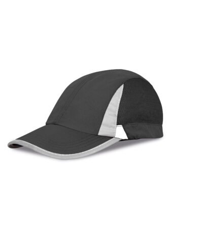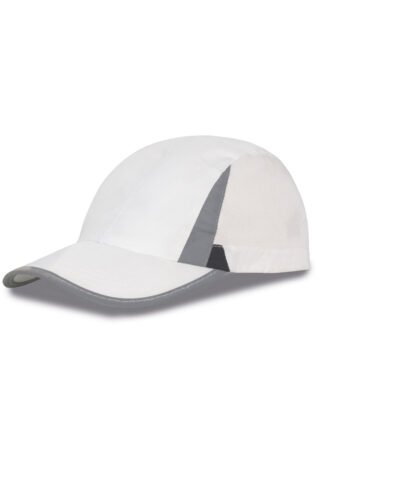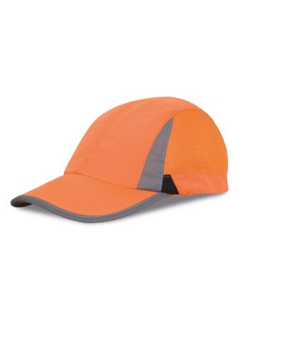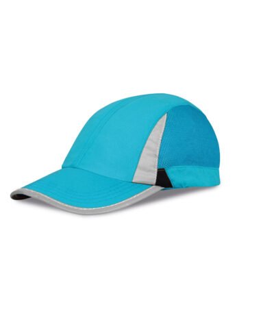 Unlined cap. Quick dry. 2 panel with mesh side panels. Pre-curved visor. Reflective detail to peak and crown. Tear release fabric size adjuster.