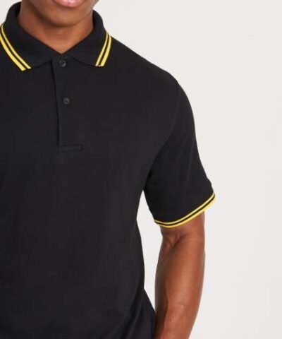 97% Cotton. 3% Elastane;Standard fit;Contrasting tipping on collar and cuffs;2 button placket with 1 spare button;Size label only;Cuffed sleeves;1×1 ribbed flat collar and cuffs;Modern and stylish fit;Taped back neck;Twin needle stitching details;Excellent surface for print or embroidery;Wash dark colours separately;