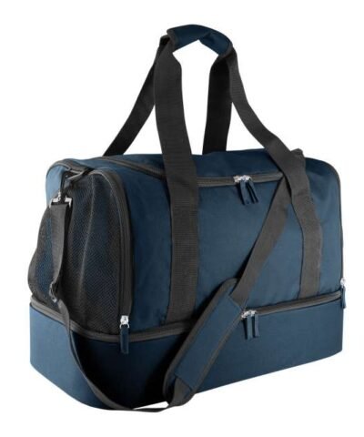 Team sports bag in 600D polyester with rigid bottom;All around zip opening;Detachable padded shoulder strap;Large side pockets;