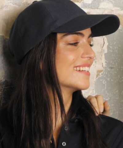 Quality;64% polyester – 32% viscose- 4% elastane;220 gsm;Style;6 panels;Pre-curved peak;Adjustable back fastening with mat black metal buckle;