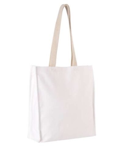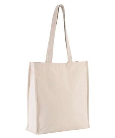 Cotton canvas tote bag with wide base and gusset;Long 70 cm ecru cotton handles;