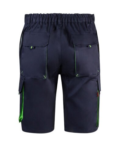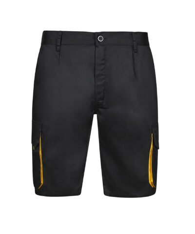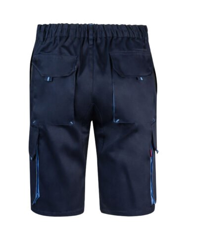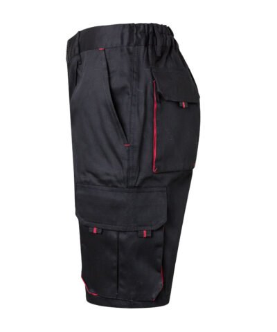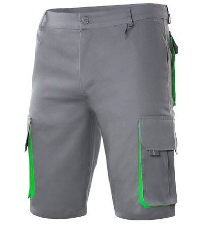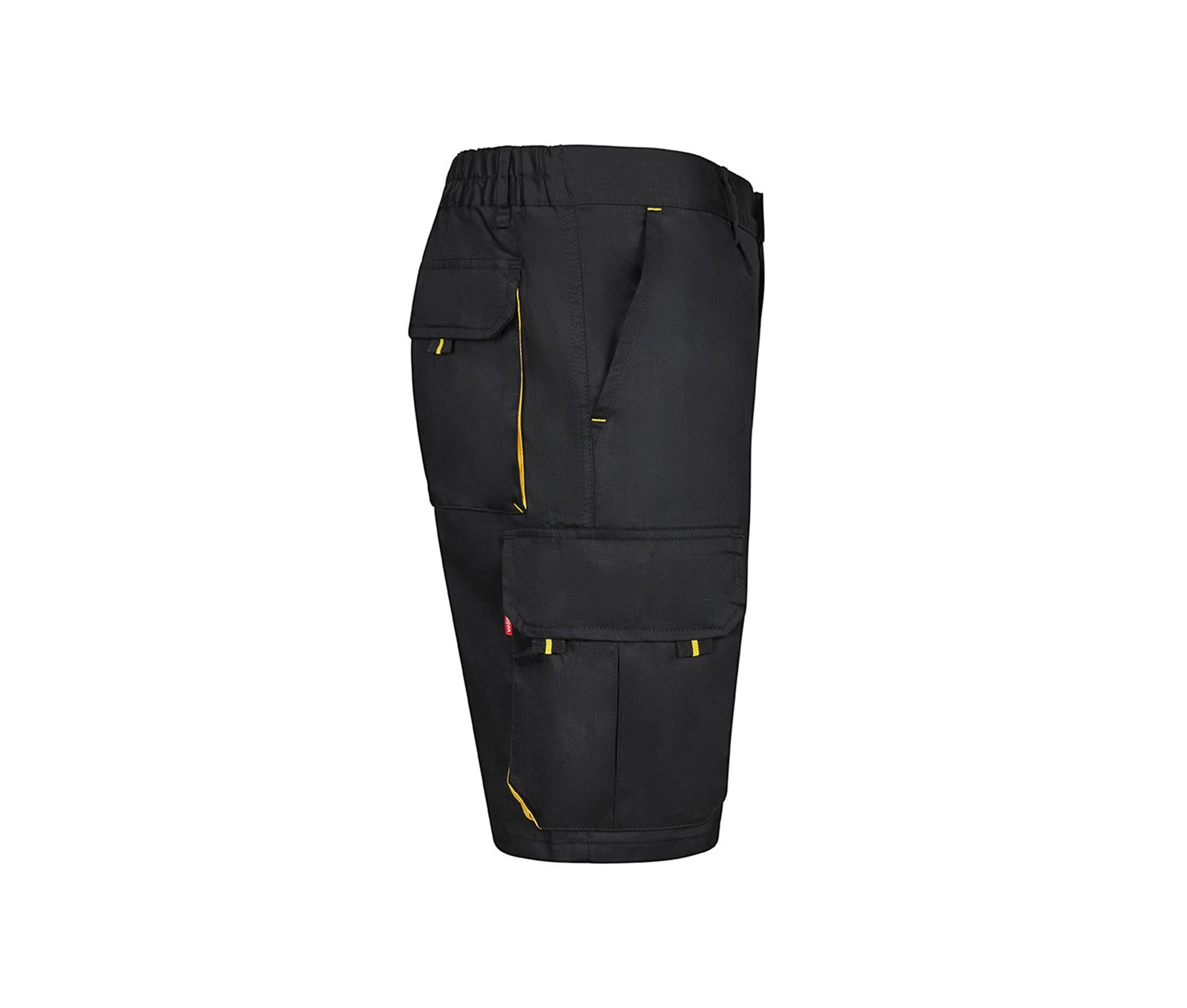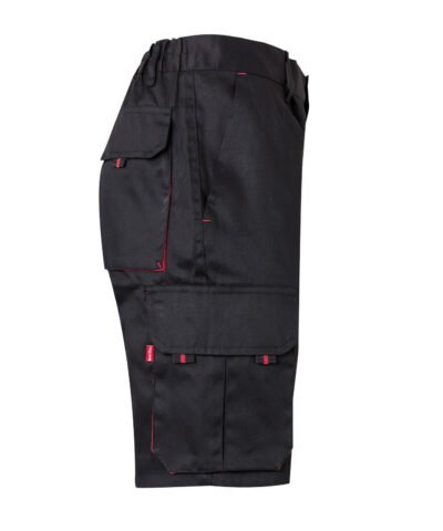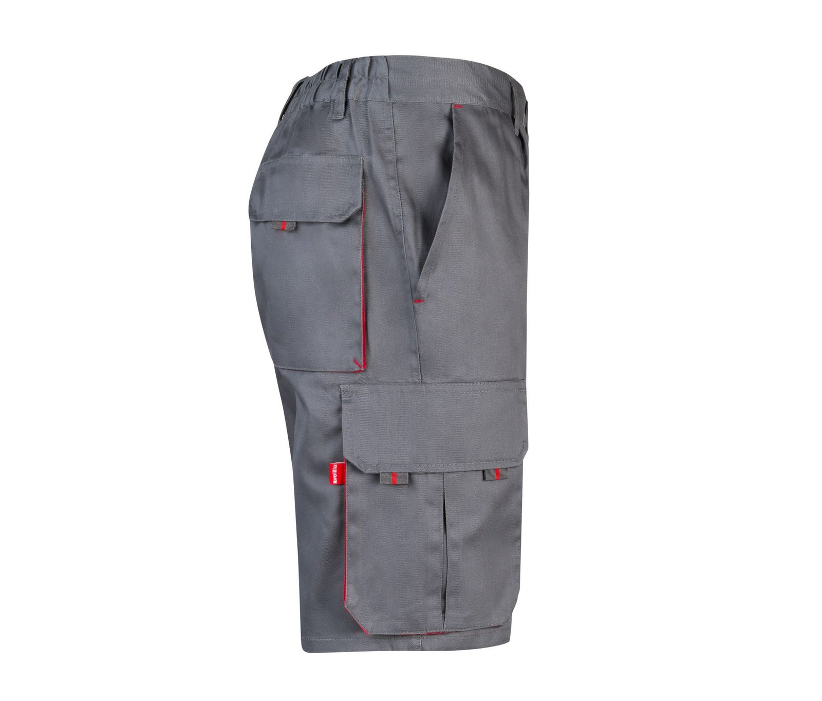 Front zip with button. Contrasting gussets, pullers and clips. Reinforced back. Elasticated waistband. Double safety seams. Darts. 6 pockets : 2 French pockets. 2 gusset pockets, flaps, Velcr
