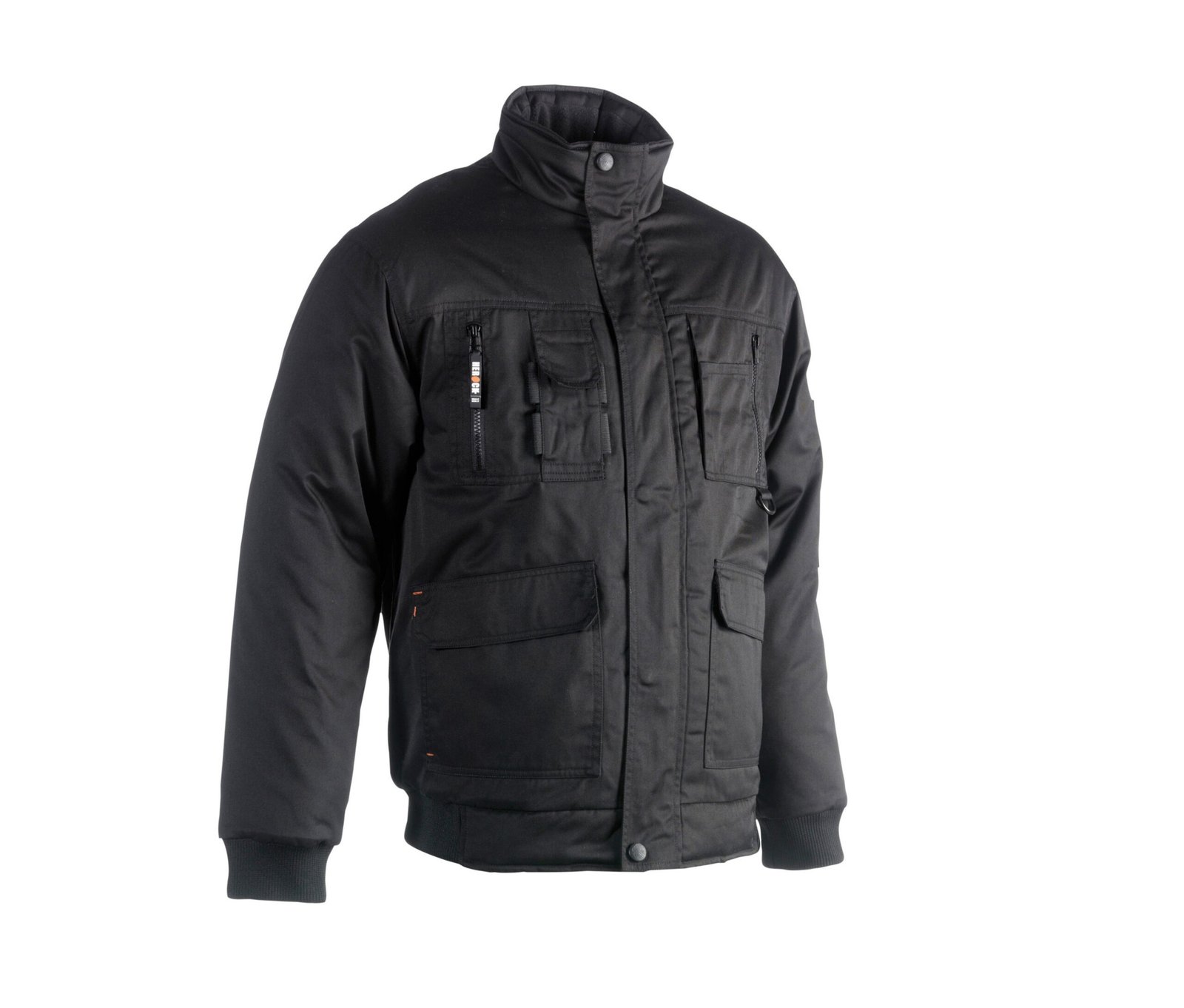 Multi-pocket water-repellent jacket with fleece collar . 1 Napoleon pocket . 2 chest pockets with small pocket . 3 pen pockets . 1 mobile phone pocket . 2 side pockets with side openings . 1