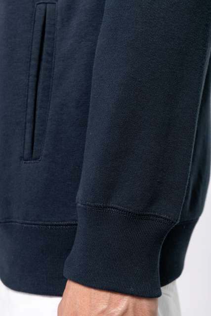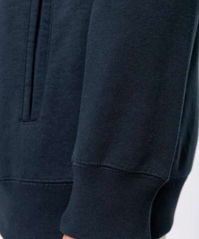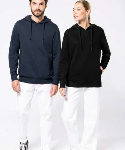 80% organic cotton / 20% recycled polyester post-consumer;Oxford Grey 75% organic cotton / 25% recycled polyester post-consumer;French terry LST (Low Shrinkage Terry);Fabric: enzyme washed;Slim fit;2piped front pockets;Ribbed cuffs. hem and lined hood. with matching drawstring with metal tip;Half-moon finish at the neckline to facilitate decoration access inside;Twill taped neck and V finish at neckline;No brand label on neck. only size tag for easy decoration access;Certified STANDARD 100 by OEKO-TEX®N° CQ1007/8. IFTH;