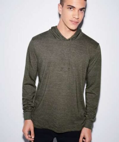 136.0 G/SqM;50% Polyester /25% Cotton /25% Viscose;Yarn Count 30/1;Hooded with self-fabric drawcord;1×1″ rib cuffs;1” double-needle bottom hem with side vents;¾” drop tail;Side seam;Double-satin razor label;