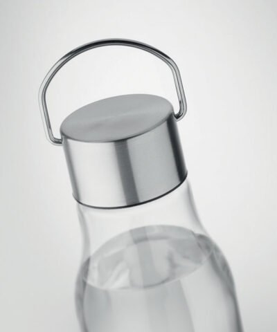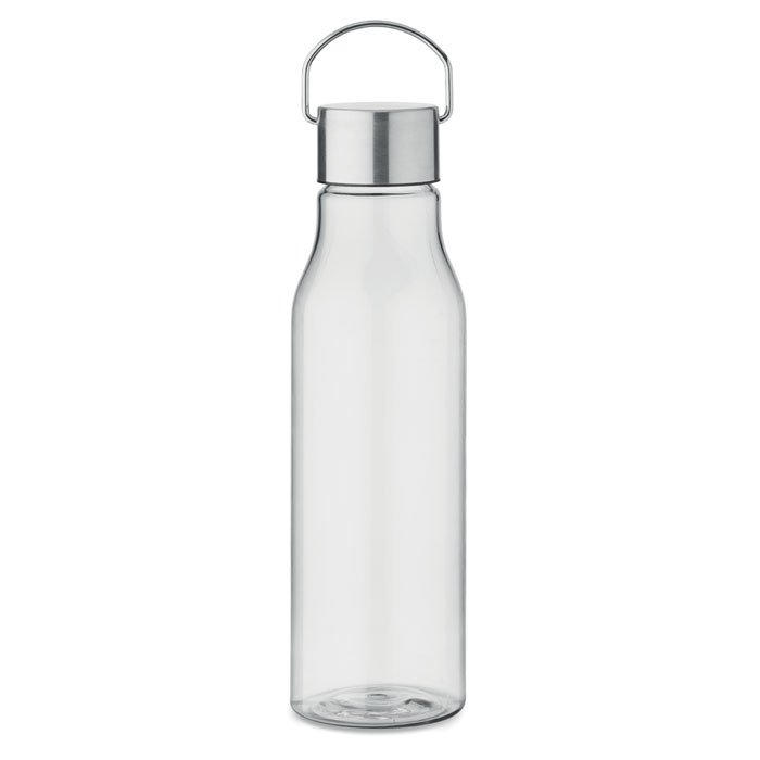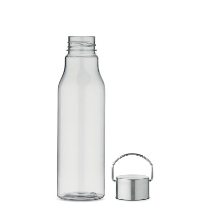 Drinking bottle in RPET which is BPA free and stainless steel cap with lid handle. Leak free. Capacity: 600 ml.