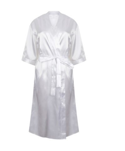 Kimono style. 2 deep patch pockets. Belt of the same material as the bathrobe.