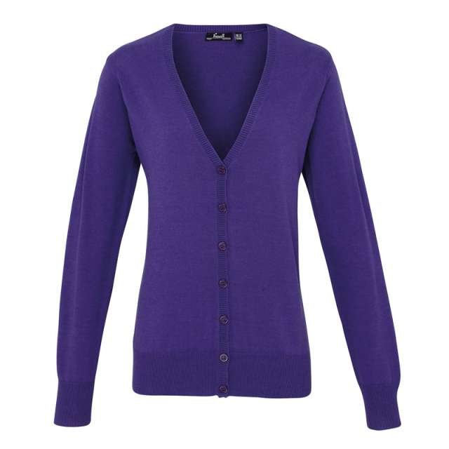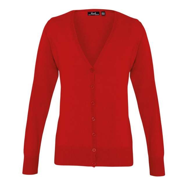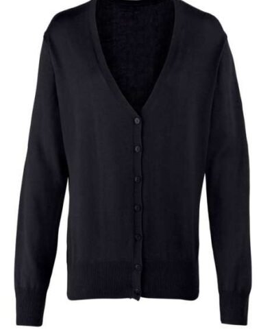 Fabric;55% Cotton 45% Acrylic;12 Gauge Knit;Features;Cotton rich ladies’ cardigan;V-neck styling;Seven-button fastening;Ribbed knit cuffs and hem;Fine gauge knit;Easy care;