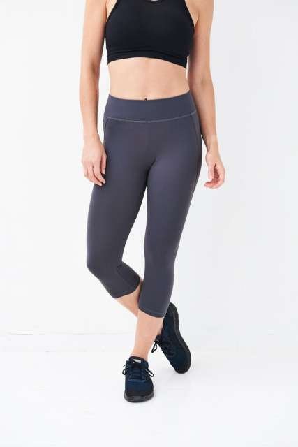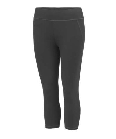 87% Polyester/13% Elastane;AWDis’ own CoolFit blended fabric containing elastane that provides stretch for comfort and a great fit;Contrast flat-lock stitching detail in 3 colours;Elasticated waistband;Inner front key pocket ;Flat seams ;Slimline 3/4 length;Tear Away Label;UPF 40+ UV protection;