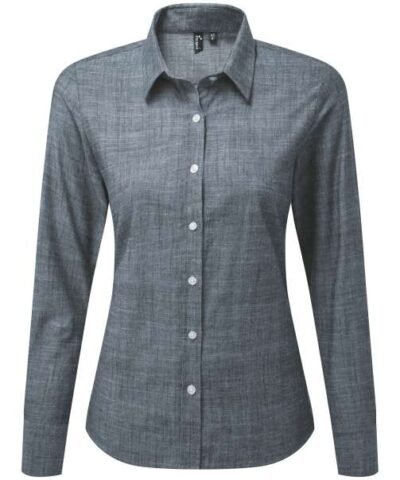 Fabric;100% Cotton Slub Chambray;115gsm;Features;Slub yarn effect for texture and personality in the fabric;Soft collar styling;Two-button cuff;Bust and back darts;Modern fit;