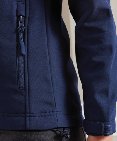 100% Recycled Polyester. 280gsm;Two layer zip-through softshell jacket with bonded fleece inner layer;Zipped side pockets;Hook ‘n’ loop strip to the cuffs;Elastic drawcord to the hem;Recycled Polyester from 48 post-consumer plastic bottles;Global Recycled Standard Certified (GRS);