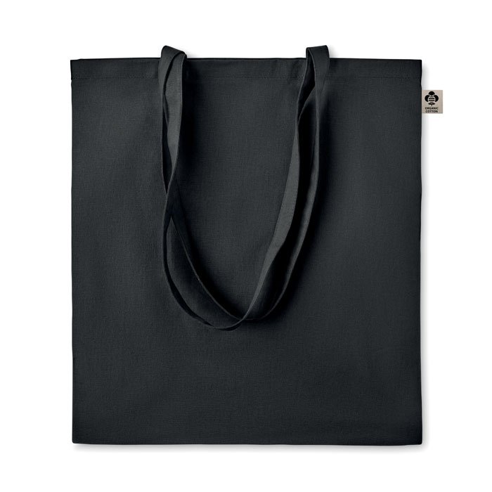 Organic cotton shopping bag with long handles. A classic tote bag design made to carry your daily groceries or other items. Carry the bag in your hands or over your shoulder with the long handles. Made from 100% natural organic cotton 140 gr/m².